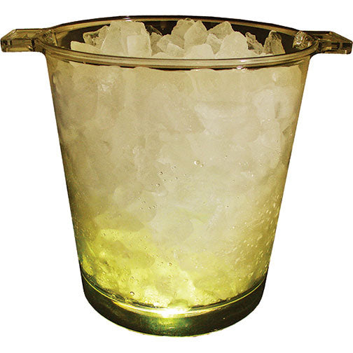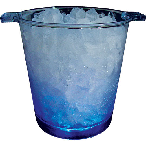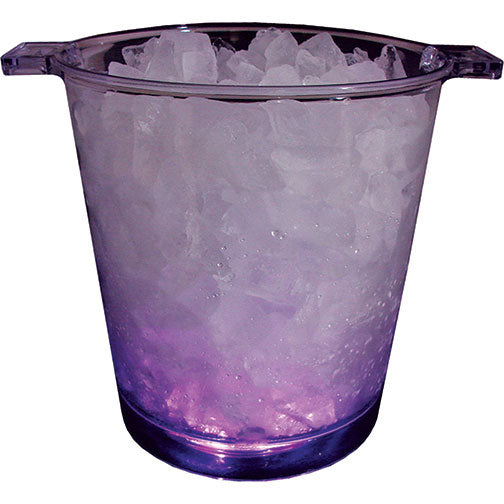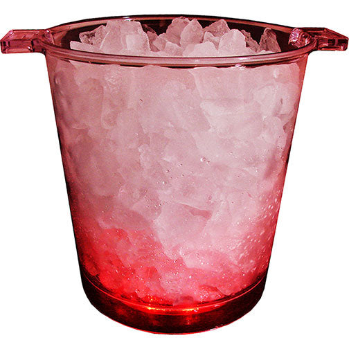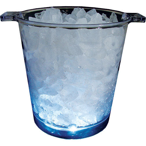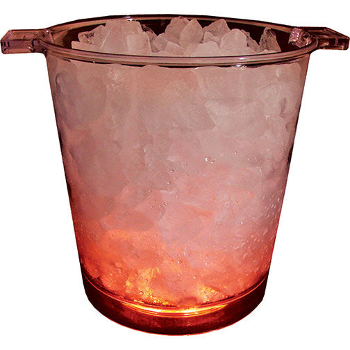 Our clear Ice Bucket features 5 super brightwhite LED lights encased in the dome color of your choice. Choose from: Red, Orange, Yellow, Citrus, Green, Blue, Purple or Clear (White.) 3 Light Functions: Spinning, Blinking and Constant-On. Replaceable batteries.