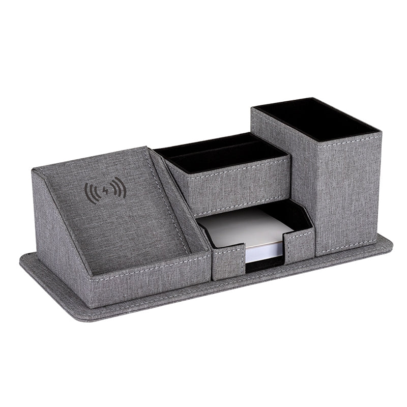The Amridge Wireless Charging Desk Organizer is both a stylish and functional gift for your customers or employees. It includes a pen cup, 2 paper clip/accessory compartments and a 100-page memo pad.