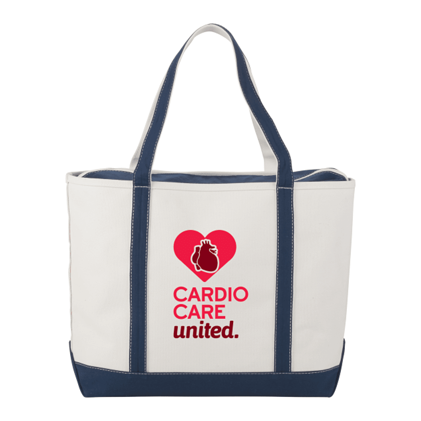 Great for outdoor events and travel. Classic boat tote with premium heavy duty material. Zippered main compartment and open interior pocket. 11" drop handles.