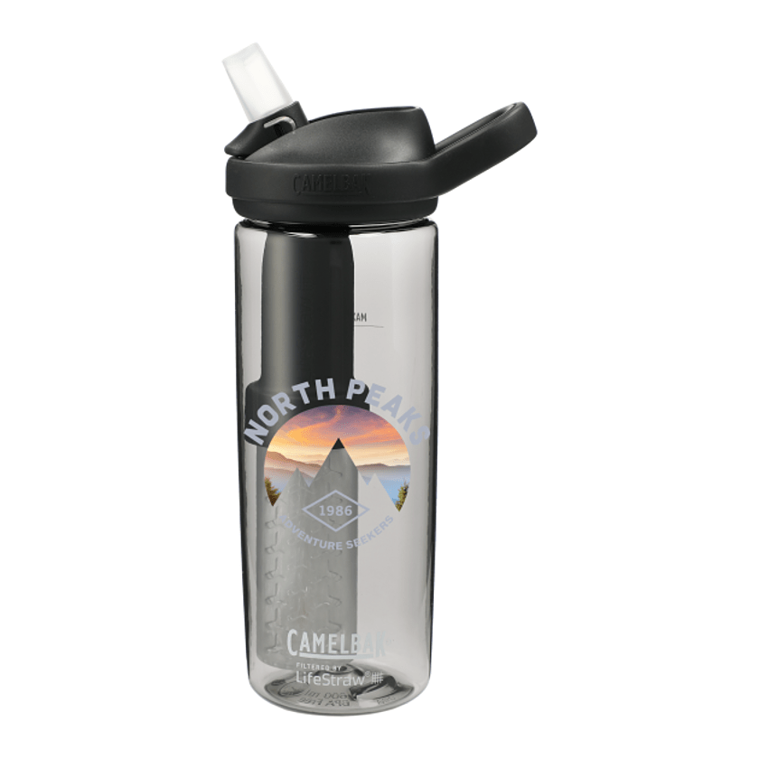 This 20oz eddy®+ water bottle features the built-in LifeStraw, which gives adventurers the convenience of home hydration wherever they roam. The LifeStraw Filter includes the Ion Exchange Filter and the Hollow Fiber Filter. BPA-free. Leed’s exclusive. 20oz. Replacement Filters are available on WWW.CAMELBAK.COM.