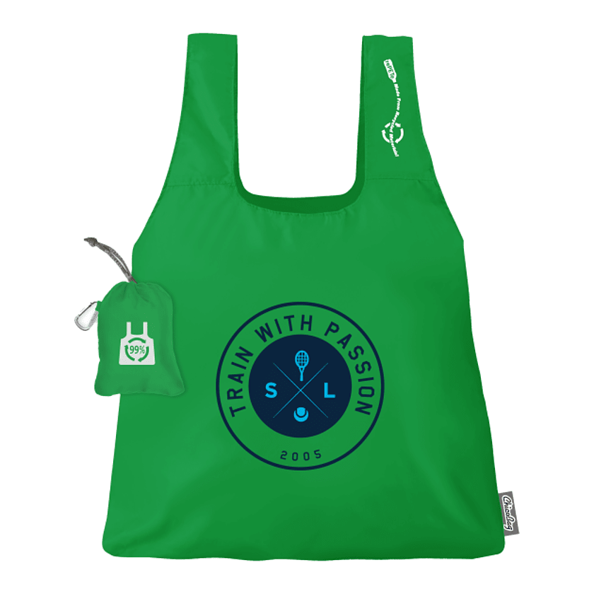 The ChicoBag Original rePETe Tote replaces 1040 Single-Use Bags throughout its life. This reusable tote bag features a 25-pound carrying capacity. When not in use, the entire bag stuffs into its built-in pouch for convenient storage in a purse or pocket.