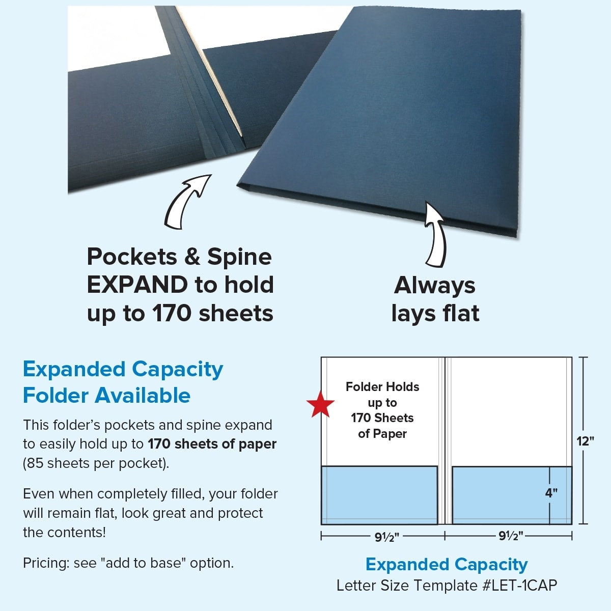 - Expanded Capacity Pockets and Spine - 4" pockets holding up to 85 sheets each