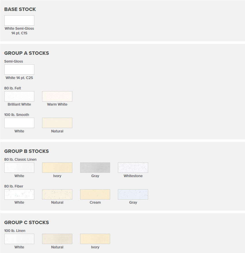PAPER STOCK OPTION COLOR AVAILABLE: