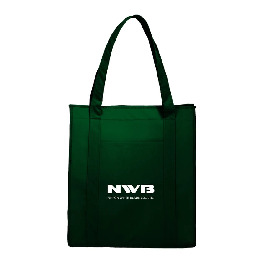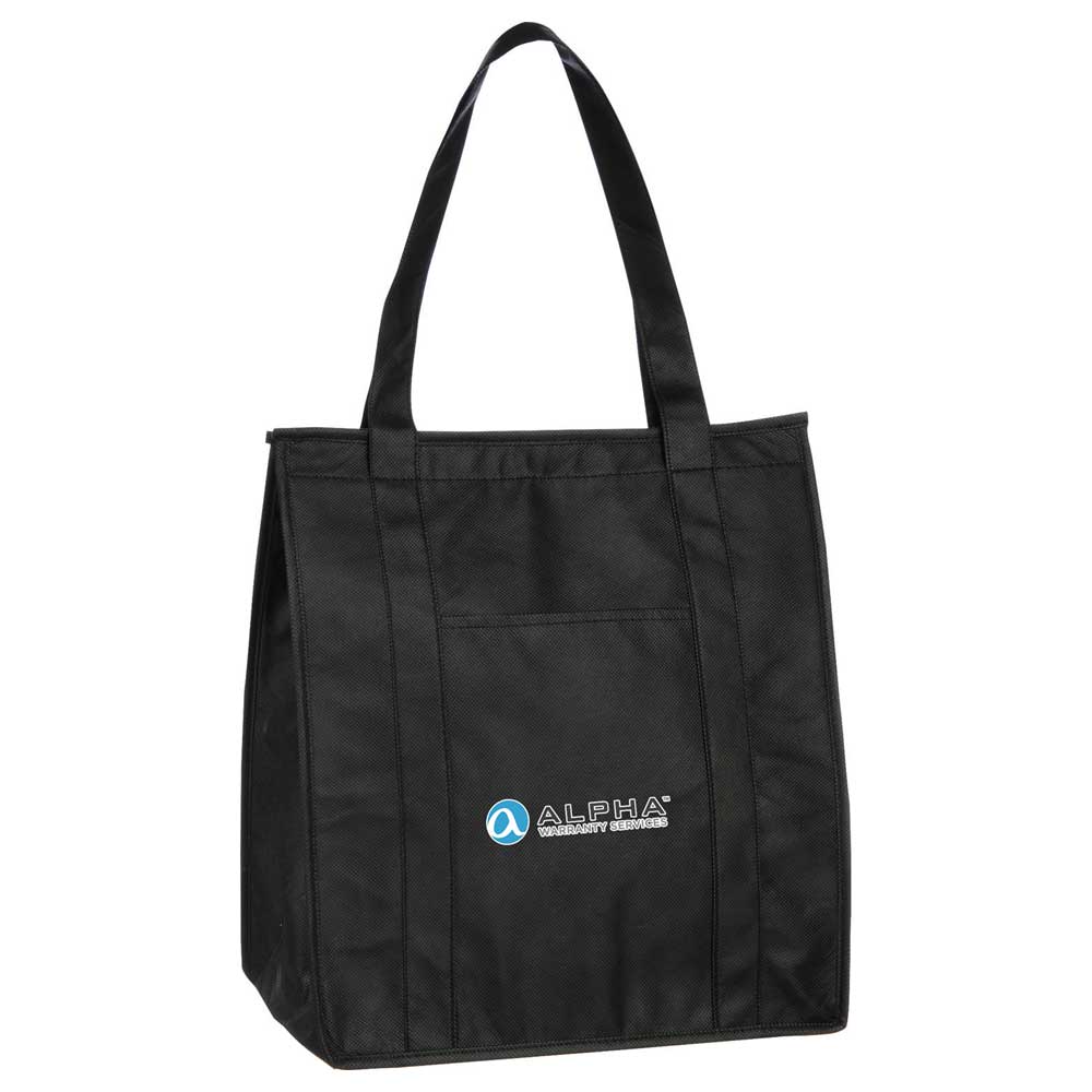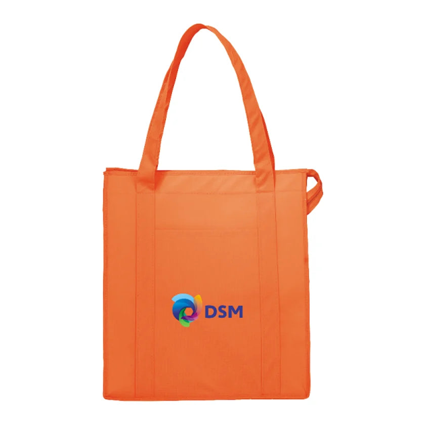 The Hercules Insulated Grocery Tote is as strong as its name suggests and is fully insulated with a heat-sealed water-resistant lining. Its zippered main compartment features a front open pocket, double 23 inch handles and is reusable and a great alternative to plastic bags. Gusset & Handle Decorating does not qualify for one day turn.