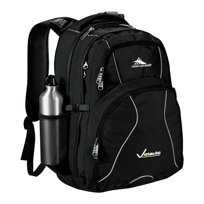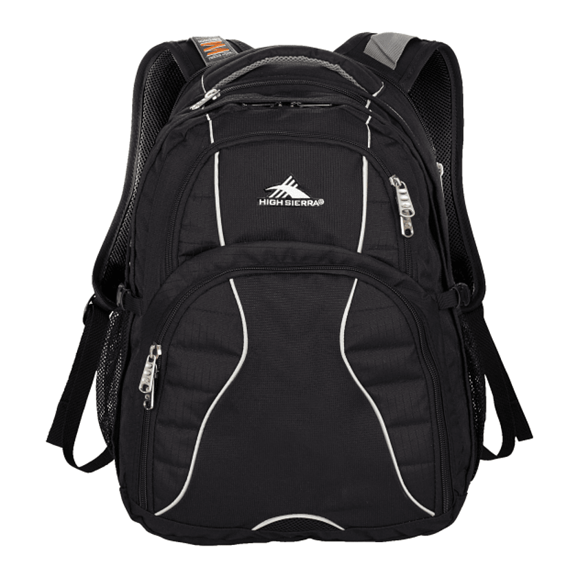 The High Sierra® Swerve 17" Computer Backpack has a padded interior computer sleeve (holds a 17" laptop) with an easy back-access zipper. It features an organizer compartment with multiple pockets, a zippered mesh pocket with a key fob and a handy media player pocket plus a valuables pocket for a smartphone. Side mesh water bottle pockets. S-shaped Vapel™ mesh Airflow™ padded shoulder straps offer a comfortable suspension system, thumb-ring pulls and a cell phone pocket. A Vapel mesh grab handle and padded back features a tuck-away waist belt. Includes lifetime warranty.