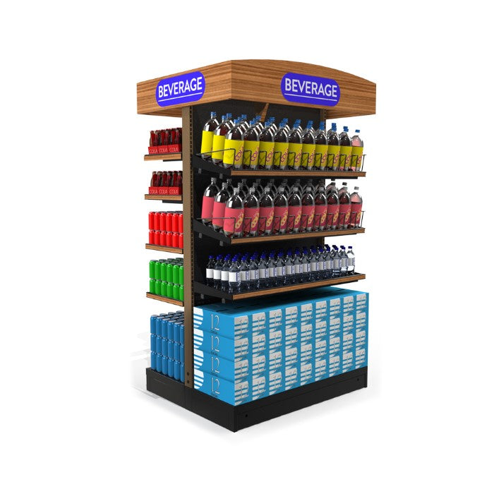 This Endcap is ideal for placement at the end of 4′ Gondolas. The front section creates a destination for large, bulky packages while the rear sections create a natural extension of the aisle perfect for smaller, profit packages.