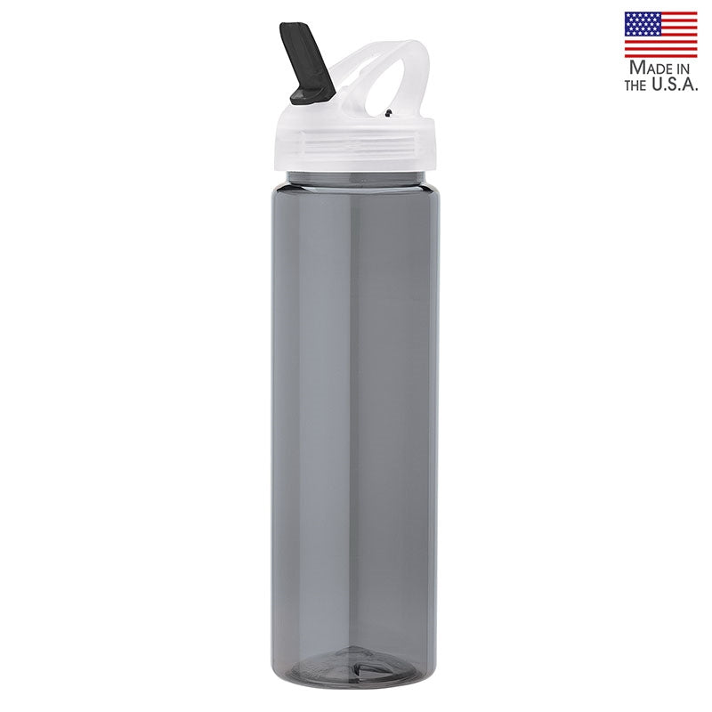 The U.S.A.-Made Newport II is a 25 oz. water bottle made from PET. It features a lid with an integrated carry handle and flip spout for drinking. The Newport bottle is FDA compliant and BPA free.