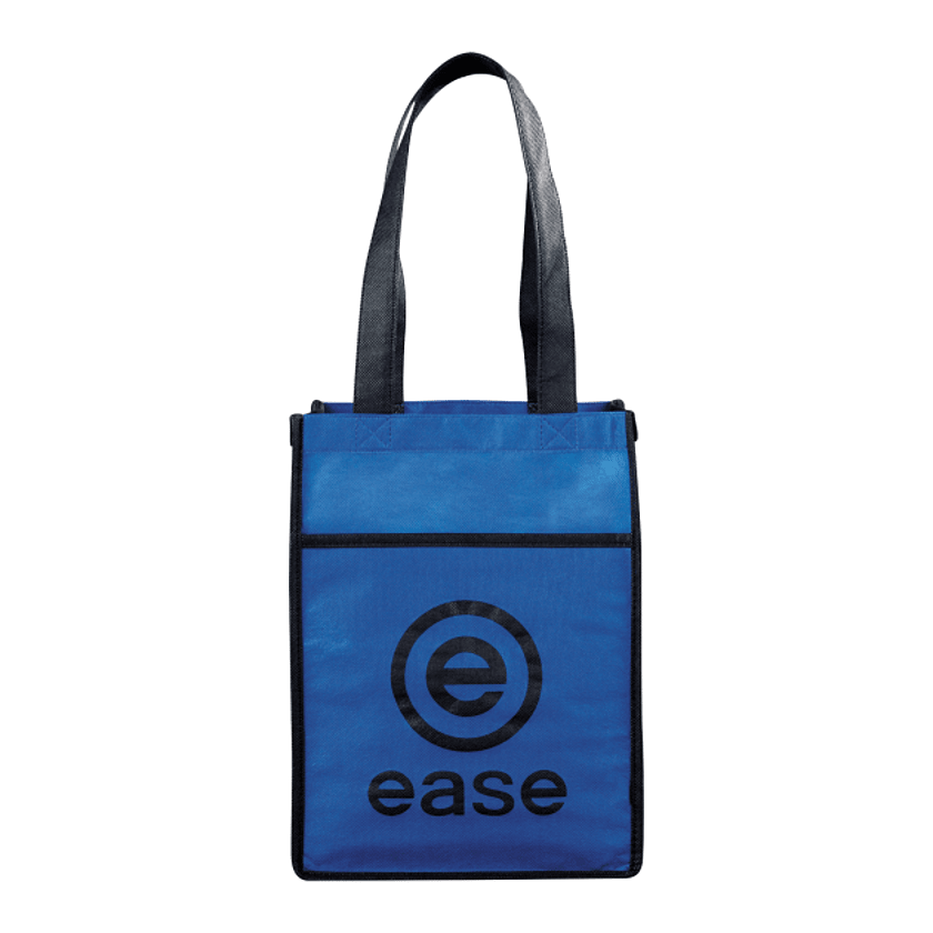 Perfect alternative to plastic bags. Open main compartment. Front open pocket. Reinforced contrast handles, binding and gusset for added durability. 9" handle drop height. Gusset & Handle Decorating is Transfer/PhotoGrafixx Only and does not qualify for SureShip.