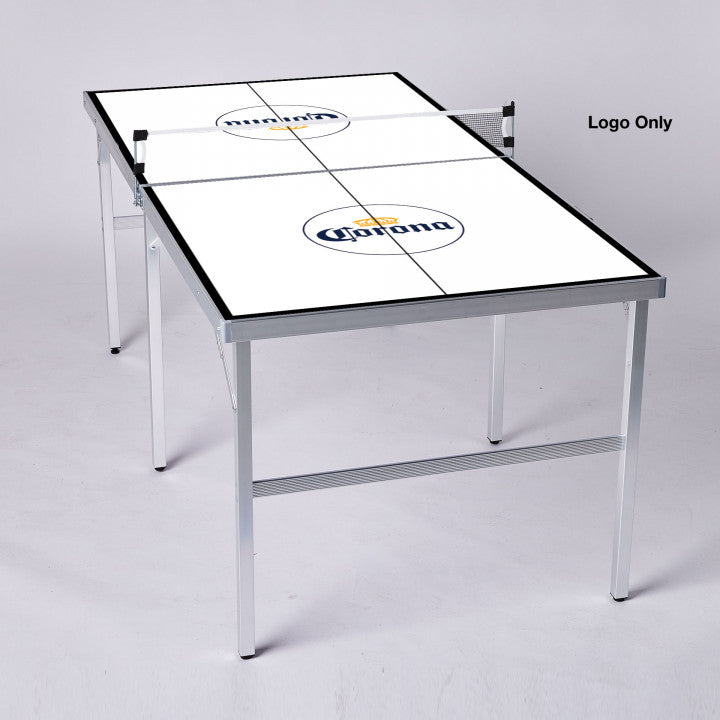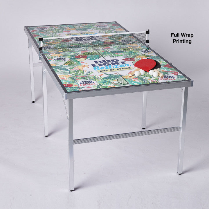 Built lightweight with comfort grip handles, adjustable legs, and easy to collapse mechanics, Portable Table Tennis can be transported anywhere! Full wrap is available making this 3 ft x 6 ft table tennis game an outstanding branding opportunity. Comes complete with 2 paddles, 4 balls, and a net. 72" W x 36" W x 30yd H